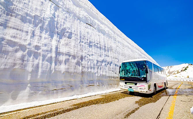 雪の大谷が見どころの立山黒部アルペンルート。大自然に触れながら働けます。