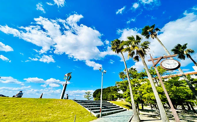 海と花々に囲まれたリゾート地。春は菜の花や桜が咲き、季節感を楽しめます。