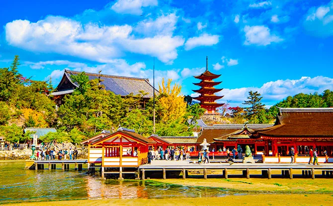 厳島神社がある人気観光地。国内外から観光客が集まるにぎやかな環境です。
