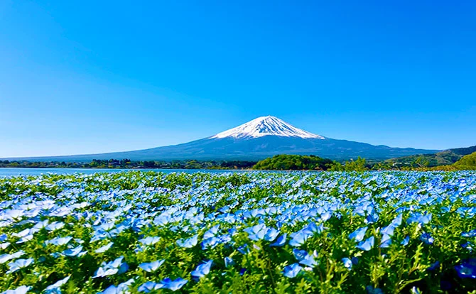 富士山を望む絶景スポットとして人気の河口湖。初夏には爽やかな風が吹き抜け、観光客でにぎわうエリアです。